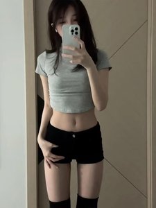 ギャルの黒い腰の低いデニムのショートパンツの女子学生の夏の新型のアメリカのレトロな弾力のガードルのお尻の熱いズボンの潮を包みます。