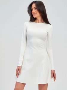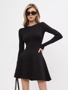 外国貿易の婦人服の独立駅の秋の新型の純色のカジュアルな事務の丸首は腰の長袖のニットのワンピースを収めます。