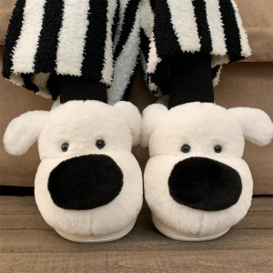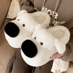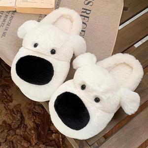 男女秋冬寝室家庭用保温かわいい毛羽立ち靴綿靴カップルの素直な鼻犬綿スリッパins