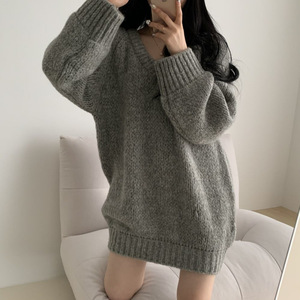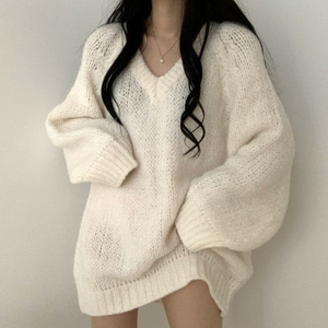 ゆったりとした襟の大きいセーターの女性2024春秋服はやせているように見えます。
