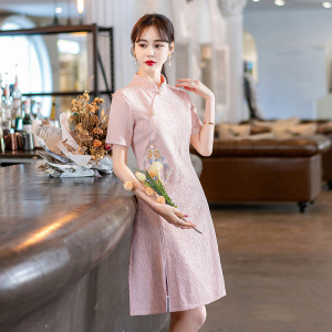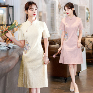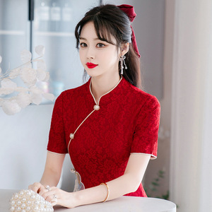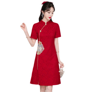 实拍大码显瘦改良收腰显瘦红色旗袍裙女夏季新款复古刺绣连衣裙
