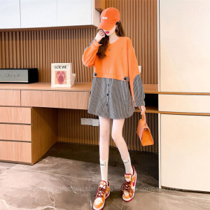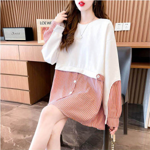 大きいサイズの婦人服の中の長いタイプは薄いタイプの衛服のデザイン感の長袖の上着をつなぎ合わせます。