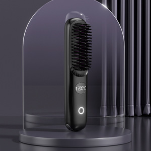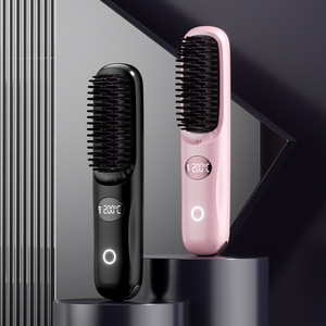 2025 新しい液晶 USB 充電セラミック加熱コームストレートヘアケアヘアアイロンワイヤレスポータブル縮毛矯正コーム