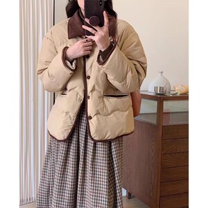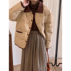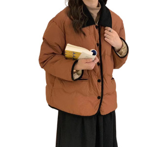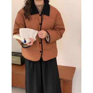 韓国のコーデュロイの襟の東門の薄いダウンジャケットの女性の短いタイプの小さい香りの風のファッションのカジュアルなコートの冬