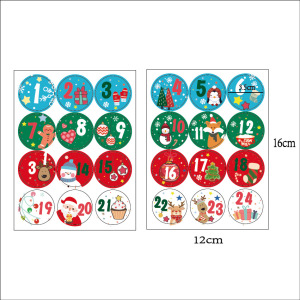 クリスマスカウントダウン数字24PCSステッカーギフト装饰ブラインドボックスセット絵ステッカーカレンダーパズルヘラジカ