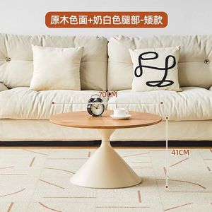 北欧クリームスタイルのラウンドコーヒーテーブル、デザイナーの小さなアパートのゲスト用、モダンな無垢材のB&B、シンプルな小さなコーヒーテーブル