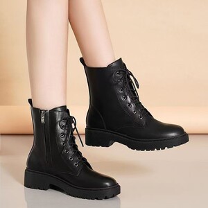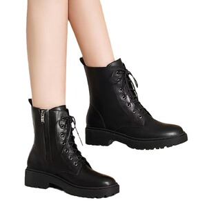 黒のファッションファッションのマーティンブーツのショートブーツの仕事が細かいパイル側ファスナーの快適な女性靴卸売り