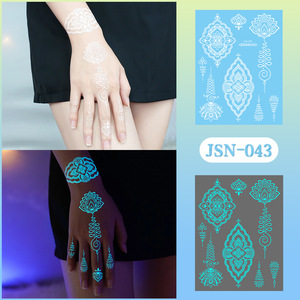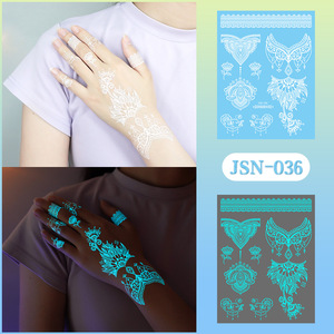 瑞卡龙新作クロスボーダーヘナ蓄光ホワイトタトゥーステッカー、フェイスステッカー、ハナアームステッカー、鎖骨ステッカー、防水ステッカー