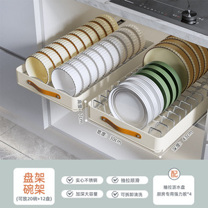 奥行き43cm [引き出し式ディッシュラック 幅30cm - ボウル7個、プレート9個を収納可能]