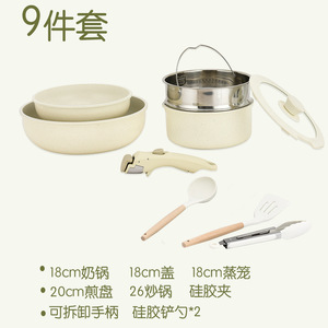 16ミルクポット+22フライパン+取り外し可能なハンドル
