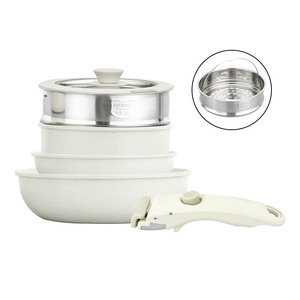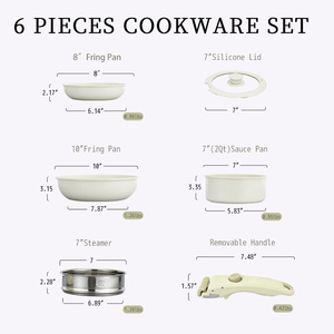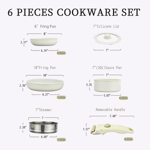 6点セット取り外し可能なハンドル鍋家庭用フライパン屋外セット鍋積層鍋キャンプ携帯セット鍋鍋鍋セット