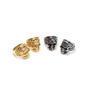 欧米のアクセサリーの指輪の卸売りのスカルの頭の指輪の316Lチタンの鋼の高調の復古の指輪の現物