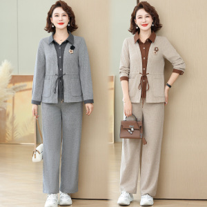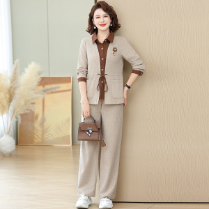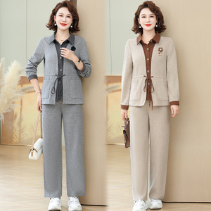 気質の中年のお母さんの服のコートの短い長袖の中で年配の女性のカジュアルなスーツの洋風のゆったりしている2つのセットのファッション
