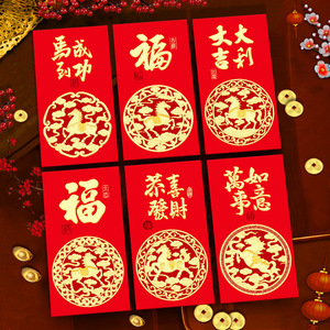 2026年馬年レッドパケット、パーソナライズされたクリエイティブなレッドパケット、漫画の馬の干支、春節、新年レッドパケットバッグ卸売