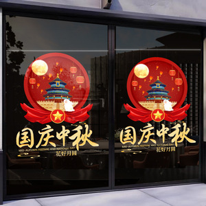 GQUV340中秋節の国慶節の装飾雰囲気はガラスのシールを配置します。