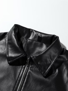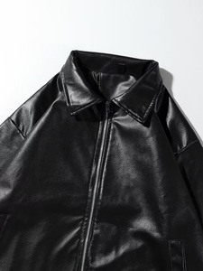 潮牌アメリカ街頭黒皮衣コート男女2024秋ゆるいpu皮機関車百合ジャケットコート