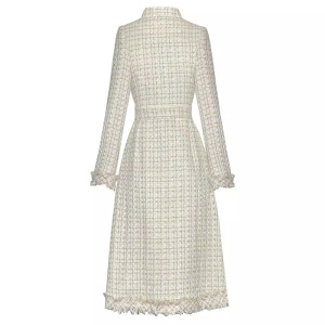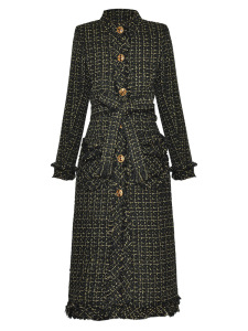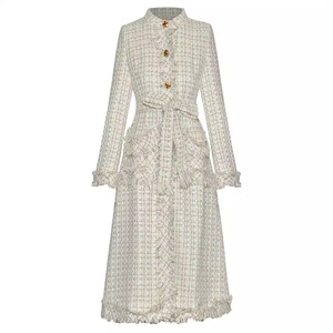 一列のボタンのフリンジのベルトはウエストポケットの小さい香風の格子のデザイン感のコートのコートのコートの風衣の2024秋の新しいです。