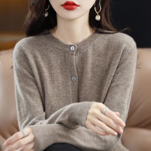 2025年新作ニットカーディガン、早春ラウンドネックセーター、レディース長袖無地万能ジャケット、婦人服、ワンピース、卸売対応