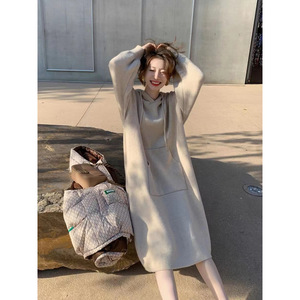 授乳冬服の底のシャツの辛いお母さんの哺乳のワンピースの秋冬の厚いニットのセーターのパーカーの産後の授乳服
