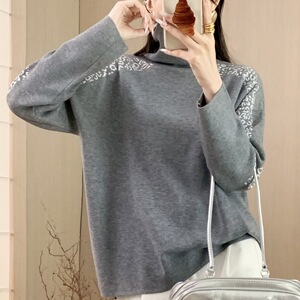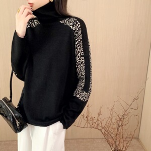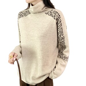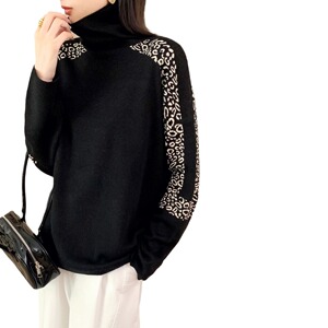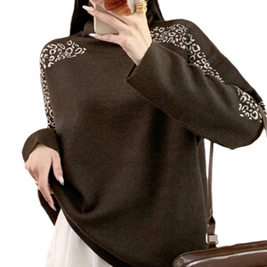 2025年越境貿易向け、おしゃれで流行のレオパード柄プルオーバーセーター、女性用、ドロップネック、カジュアルでゆったりとしたデザイン、配色トップス