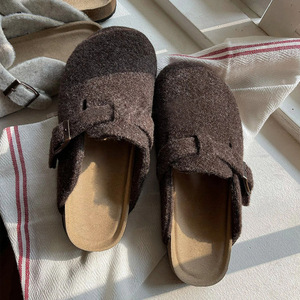 包头半拖鞋女外穿2024爆款网红毛呢平底软木勃肯鞋