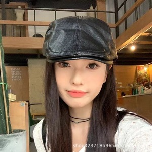 2025新型韓国版pu皮質ベレー帽女性男性のレトロな顔を見せています。