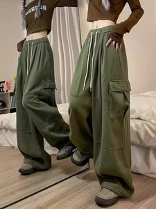 アメリカのレトロなピンクの服装のズボンの女性の春秋のまっすぐな筒のゆったりしている広脚の高い腰はやせているカジュアルなズボンのデニムのズボンの潮を現します。
