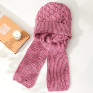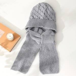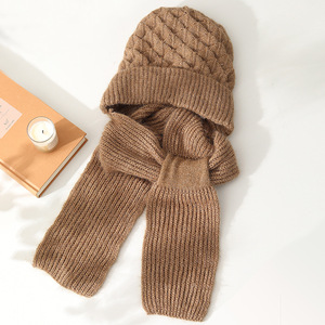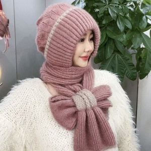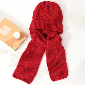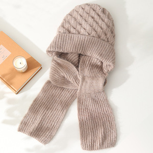 帽子とスカーフが一体化した女性の新しい秋冬ニット防風帽子、暖かいプラスベルベットママファッション耳保護ウール帽子