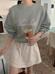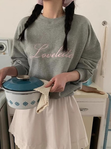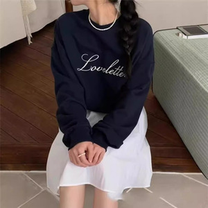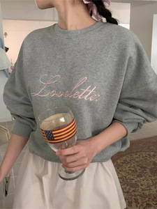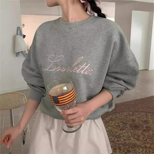 韓国chi春秋服レトロ百合丸首刺繍ゆったり学生カジュアル長袖パーカー