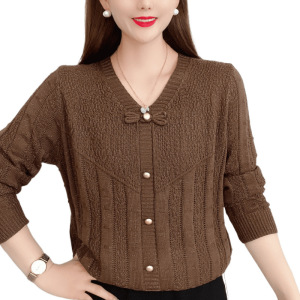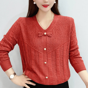 秋の新型の蝶結びは底の洋気が簡単で、透かし編みのニットのゆったりした長袖のニットのセーターの上着を合わせます。