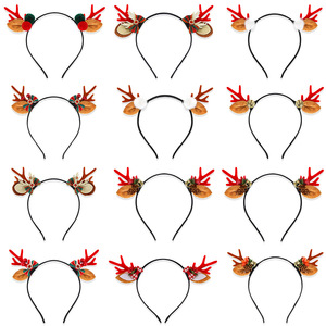 クリスマスの鹿の角のカチューシャの森はヘラジカの角のカチューシャの女性のカチューシャを結んで鈴の鹿の耳の蝶結びのクリスマスのカチューシャを持ちます。