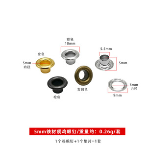 内径5mm 鉄丸刃アイレット+鉄ガスケット【ガンカラー】