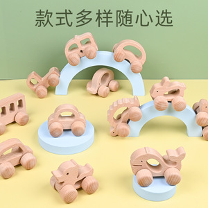 ケヤキの小さい車のおもちゃの木製の子供の実木のおもちゃの車は慣性の模型の手を握って小さい車を押します。