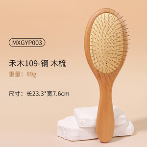 オーバル【スチール歯】エアクッションウッドコーム
