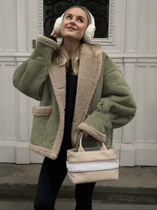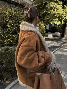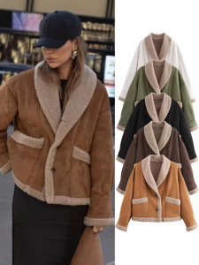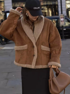 クロスボーダーヨーロッパとアメリカの秋冬新作レディースレトロウールジャケット、ラペル付きルーズファーワンピースジャケット
