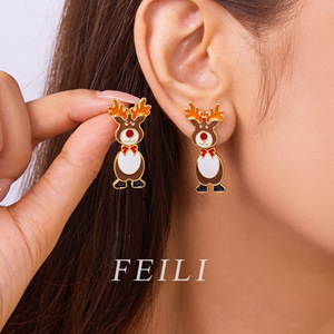 欧米の国境を越えて人気のクリスマスアクセサリーが萌えているクリスマスヘラジカのピアス