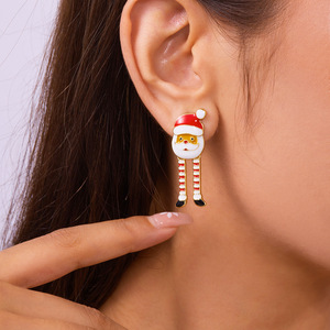 欧米のクロスボーダーのクリスマスの装飾品はアニメのサンタクロースのピアスの女性の個性をおかしにします。