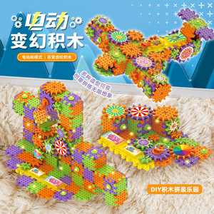 クロスボーダー電動の組み立て積み木百変機械歯車連動子供パズル積み木玩具幼稚園