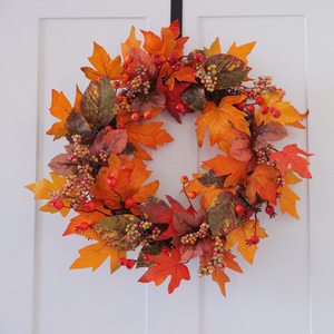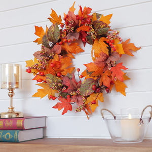 国境を越えた秋の新しい感謝祭の装飾秋の花輪は紅葉の花輪のベリーの紅葉の花輪をシミュレーションします。