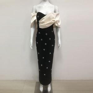 秋のアマゾン新作ファッションレディースフィットバンドゥストーン付きロングドレスワンピース欧米風新作ドレス卸売
