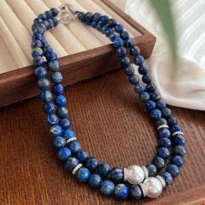 国風レトロ高品質天然ラピスラズリ鎖雰囲気感ネックレス