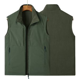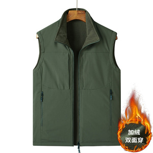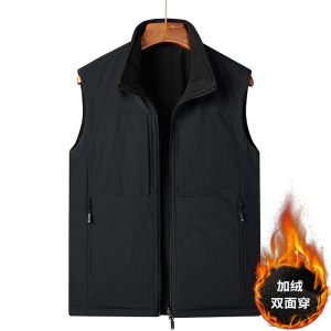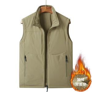 秋冬の新型の両面にベルベットの馬甲を着ている男性の中高年のゆるい大きいサイズの純色の襟のカジュアルなスポーツベスト