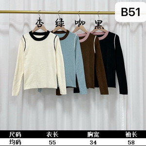 复古撞色拼接内搭针织衫女装早秋设计感修身薄款正肩上衣