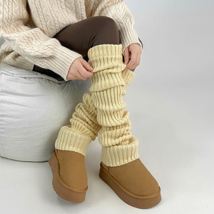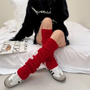 安可拉红袜子女春秋针织堆堆袜套长筒袜过膝袜护膝防滑腿套日系