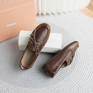 平底单鞋百搭舒适乐福鞋系带女浅口做旧复古擦色休闲皮鞋简约时尚