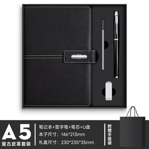 アテネブラック-【4点セット】ノート+サインペン+リフィル+Uディスク