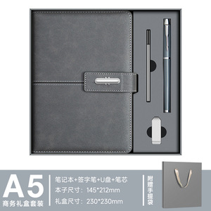 エレガントグレー-【4点セット】ノート+サインペン+リフィル+USBフラッシュドライブ