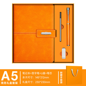 鮮やかなオレンジ-【4点セット】ノート+サインペン+リフィル+Uディスク