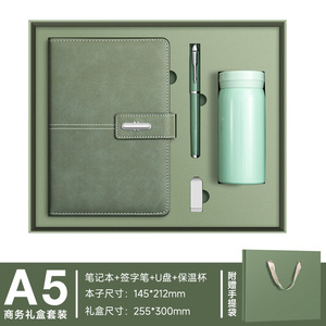 抹茶グリーン-【4点セット】ノート+サインペン+リフィル+Uディスク