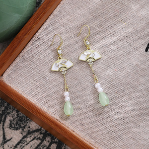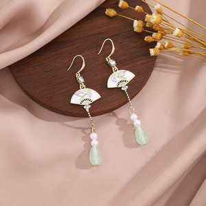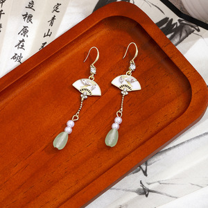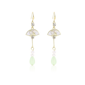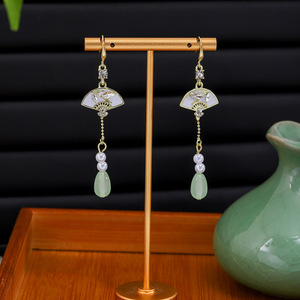 新中国式の扇形の竹の葉はダイヤモンドの長いタイプの水滴のフリンジイヤリングの国の潮の復古の軽くて豪華な冷たい感の耳飾りの女性を入れます。